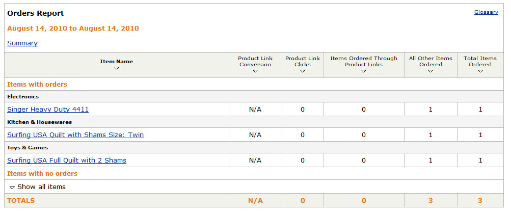 ผู้เขียนมีตัวอย่างของยอดขายวันที่ 14 สค 53 มาให้ดูกัน เพื่อเป็นกำลังใจ และมองรูปแบบสินค้าทำเงินได้ เพื่อที่เราๆ จะได้ Affiliate Amazon Rich กันเยอะๆ ดังภาพประกอบด้านล่างนี้